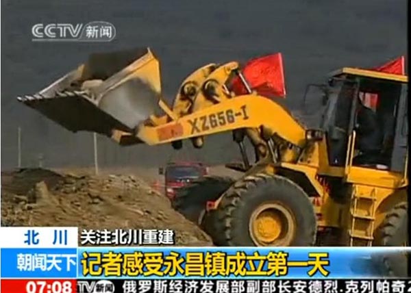 2010年2月3日早7:08分,央視新聞頻道的朝聞天下欄目,播出了汶川地震后第一個異地重建的新縣城---北川縣城所在地永昌鎮(zhèn)黨委、政府正式掛牌成立的報道,目前,北川的各項工程建設(shè)正在如火如荼的進行中,其中在央視的報道中,廈裝XZ656-Ⅰ裝載機正在繁忙的作業(yè)中。據(jù)了解,我司的裝載機在汶川地震后的重建中發(fā)揮了重要作用。